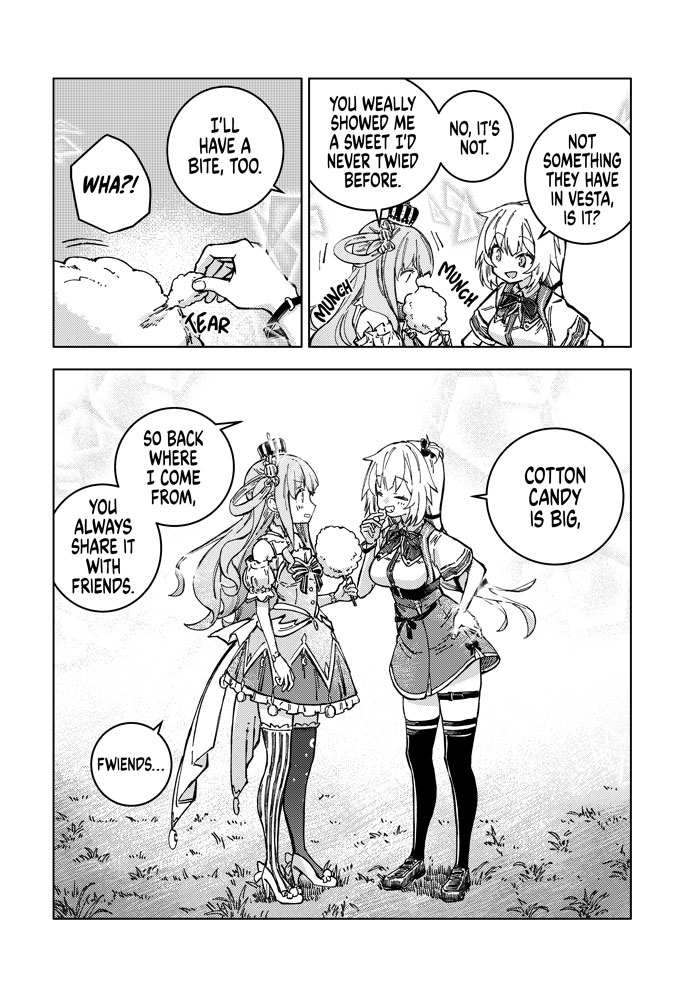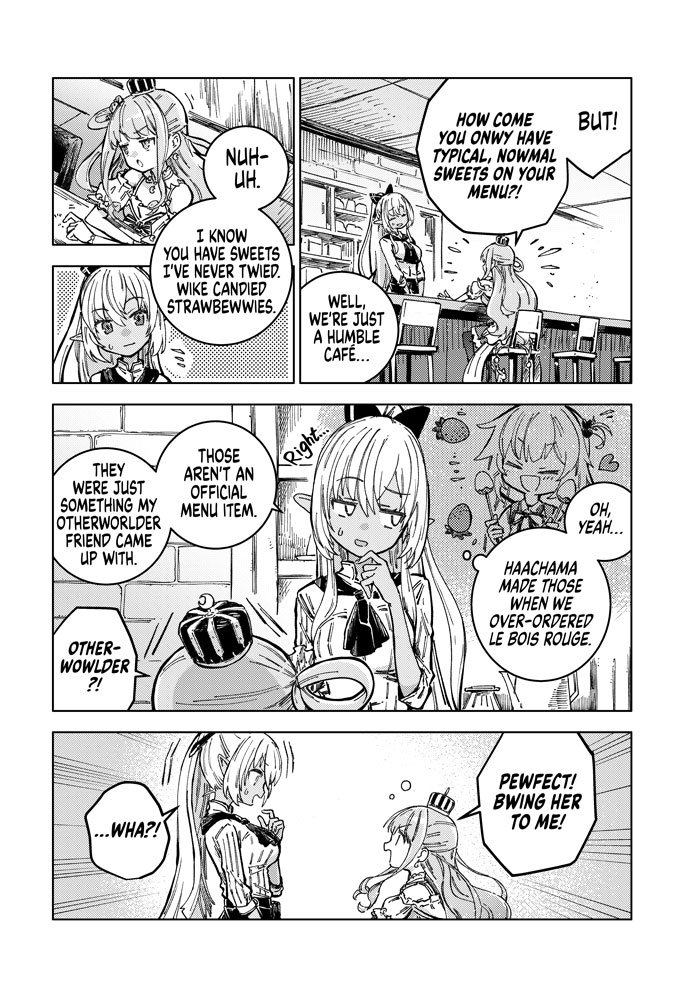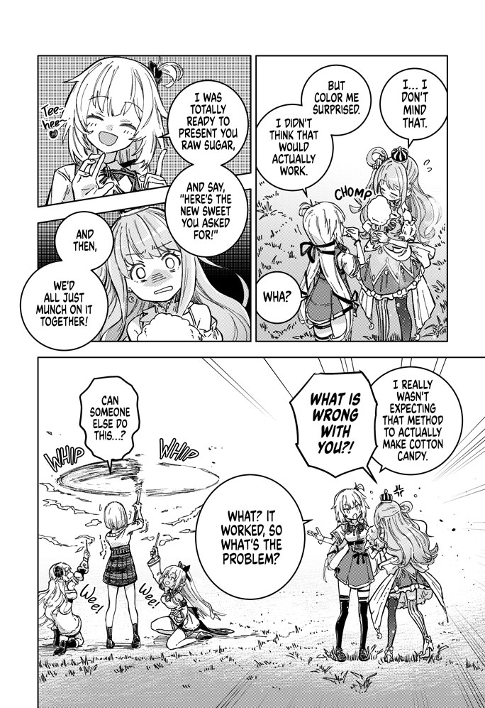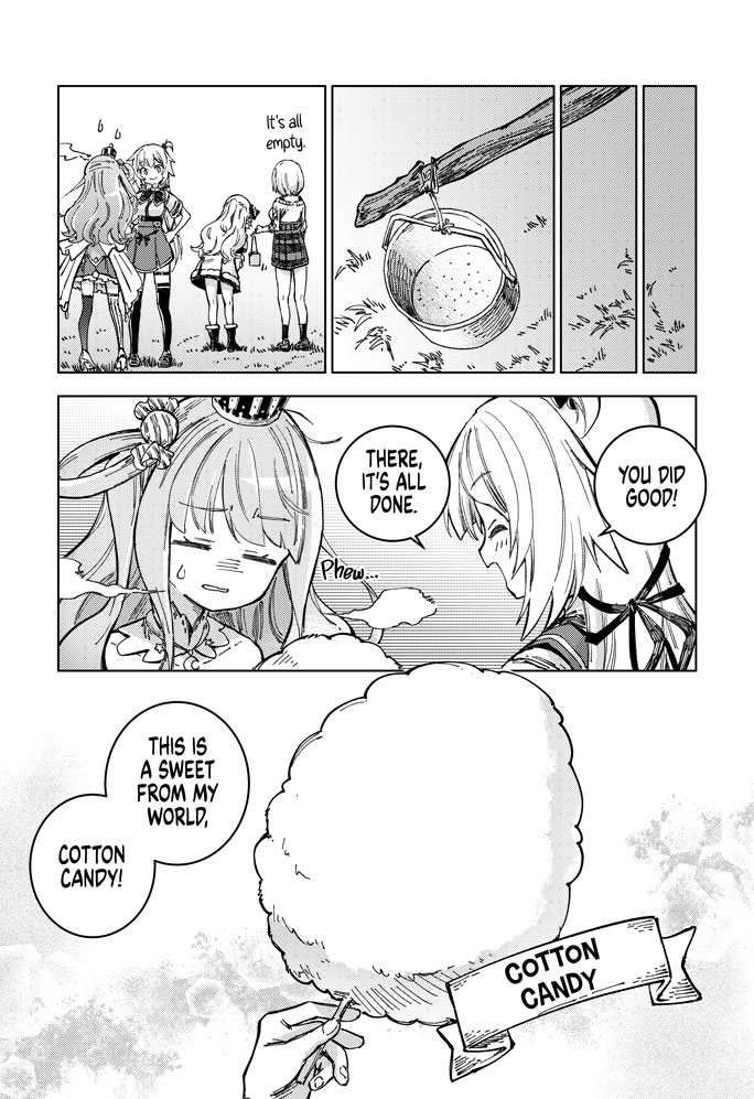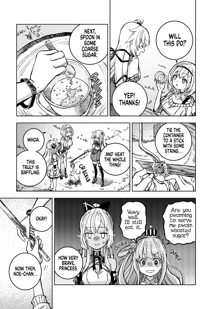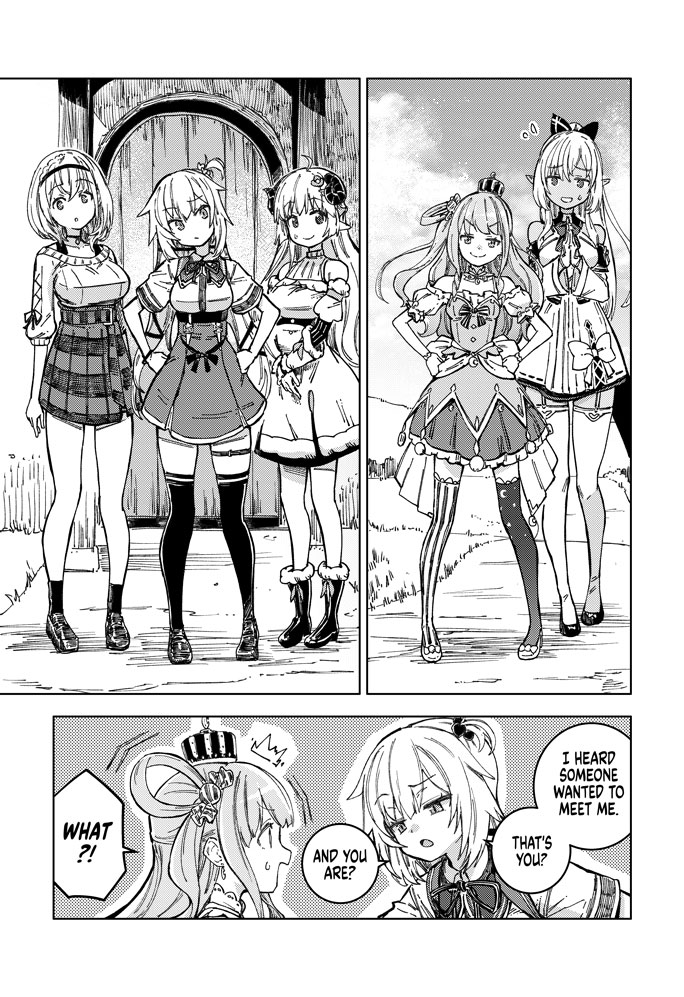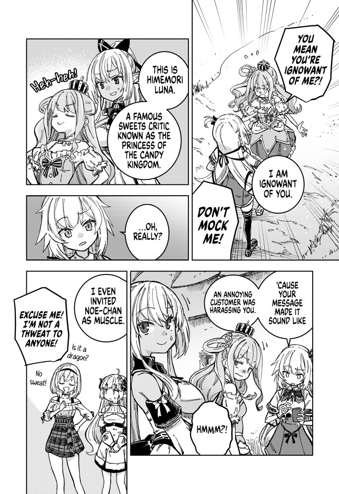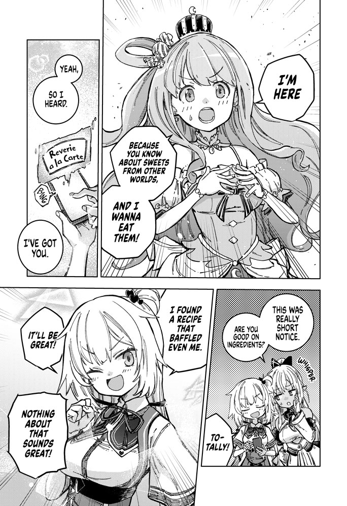 Meet Akai Haato, a girl with cooking so powerful that she isekai'd herself with a single bite. Waking up in a new world, she meets the horned shepherd Tsunomaki Watame, the popular local café's poster girl Shiranui Flare, and the knight order commander Shirogane Noel.