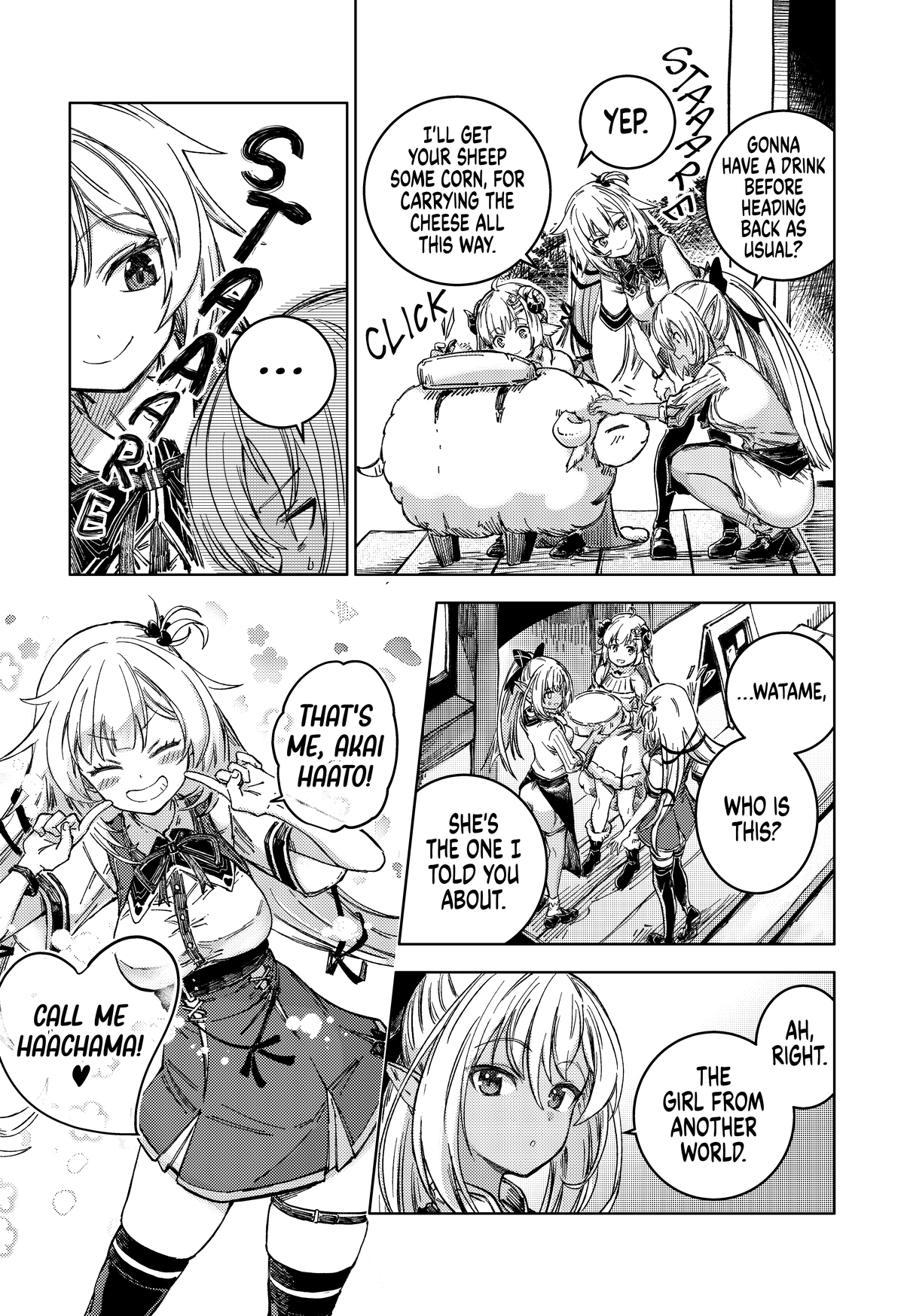 Meet Akai Haato, a girl with cooking so powerful that she isekai'd herself with a single bite. Waking up in a new world, she meets the horned shepherd Tsunomaki Watame, the popular local café's poster girl Shiranui Flare, and the knight order commander Shirogane Noel.