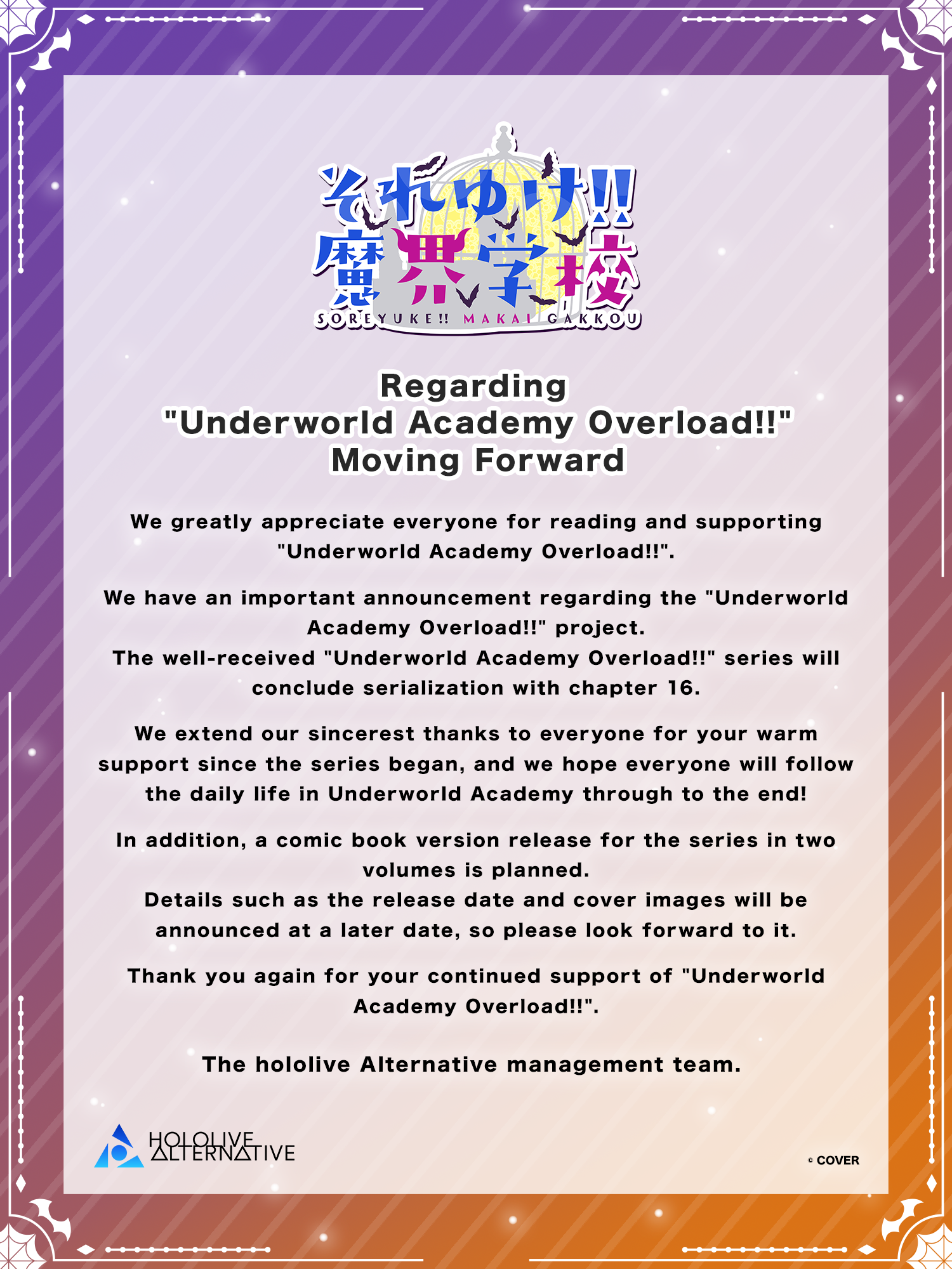 Regarding “Underworld Academy Overload!!” Moving Forward