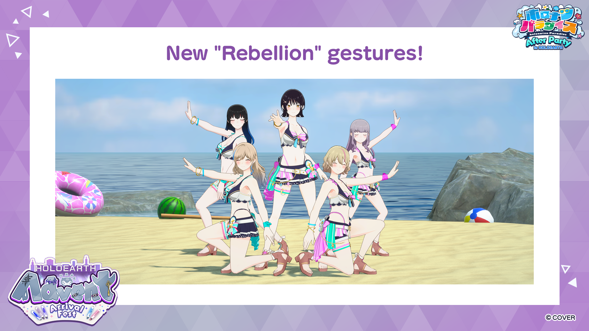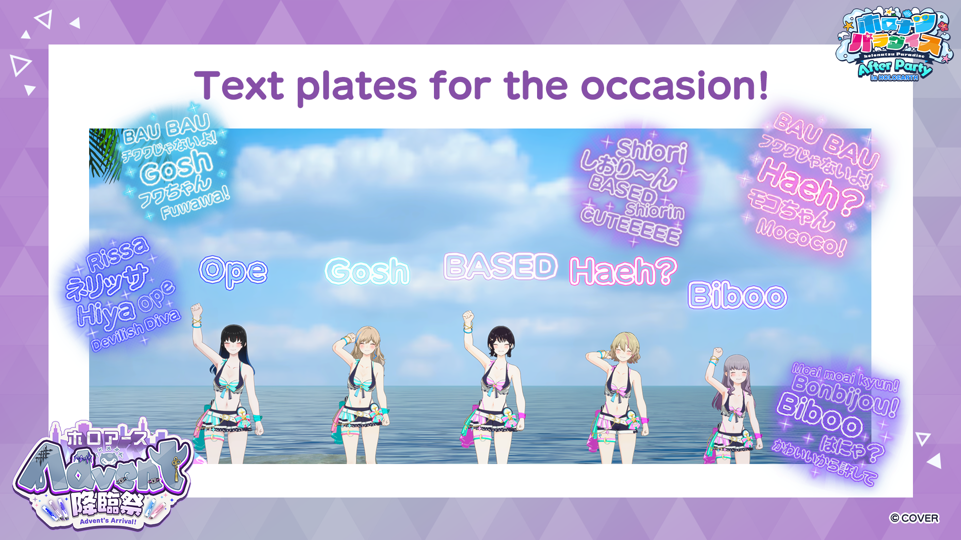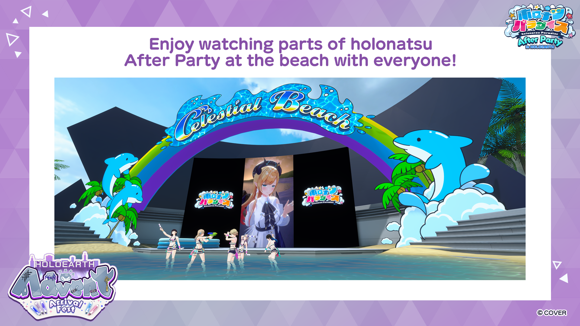 Fans will also have a chance to watch parts of holonatsu Paradise After Party in the new Celestial Beach arena with the talents, and try their creativity at making talent-themed Marketplace items leading up to the event – so continue reading for more information!