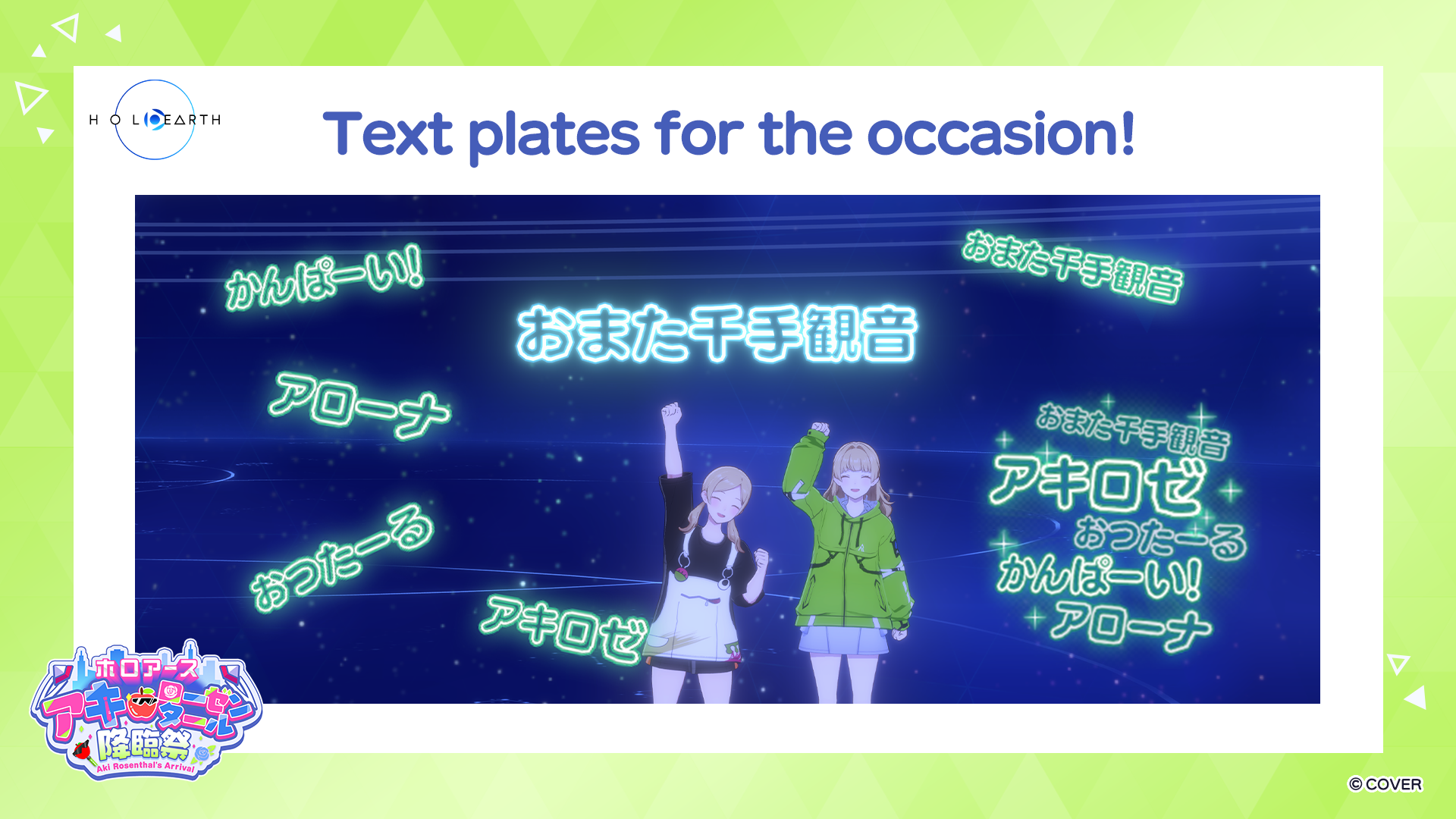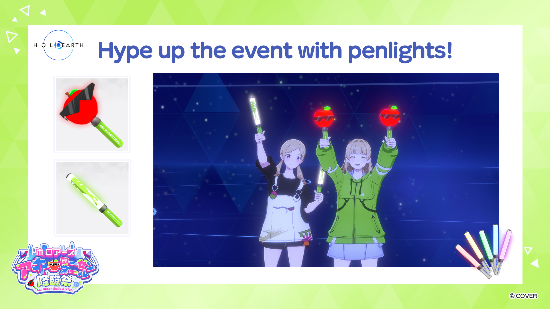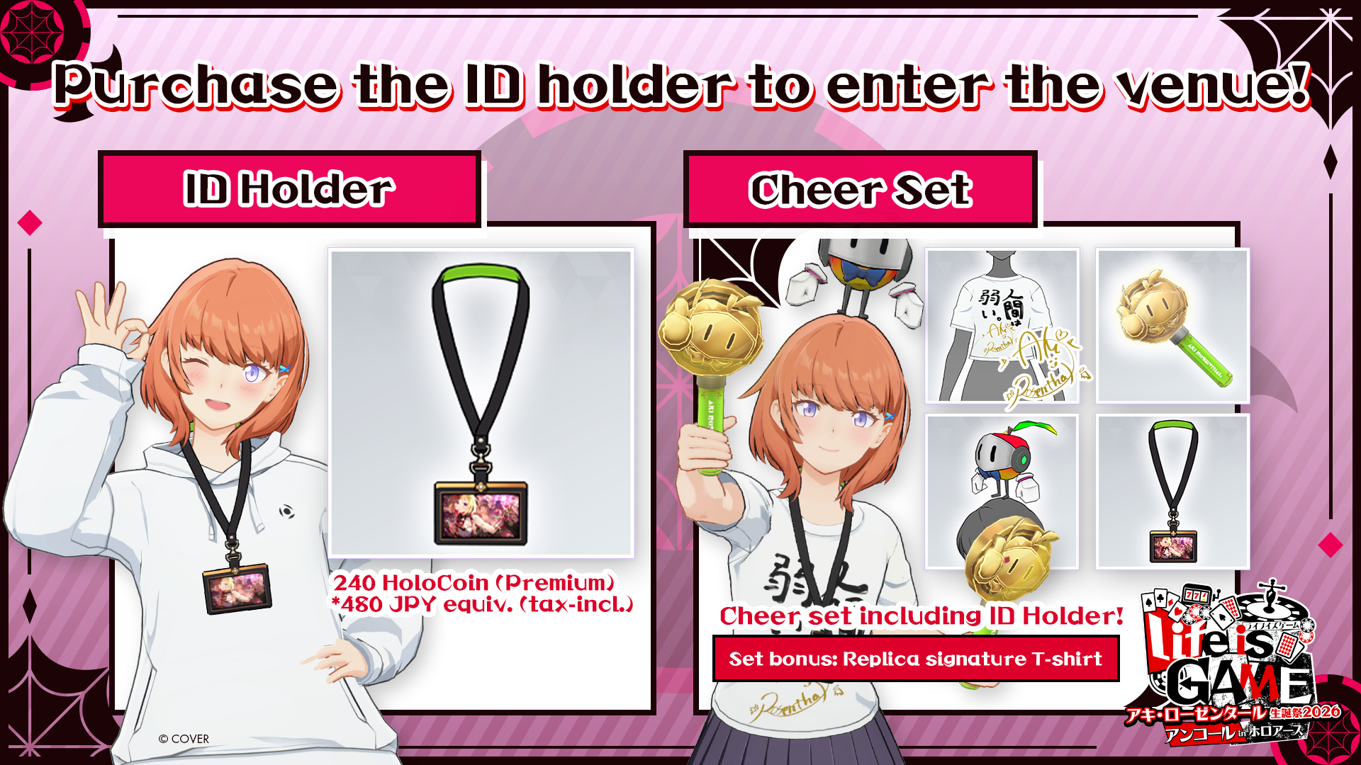 A special cheer set with items for supporting Aki Rosenthal will also be available for purchase, which includes items such as a mascot hair accessory and penlights.