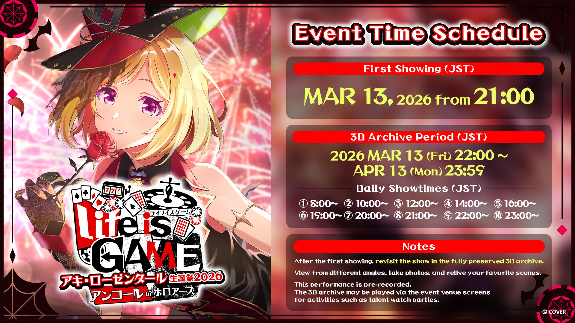 3D archive period (JST): March 13 (Fri) 21:00 – April 13 (Mon), 2026 23:59
