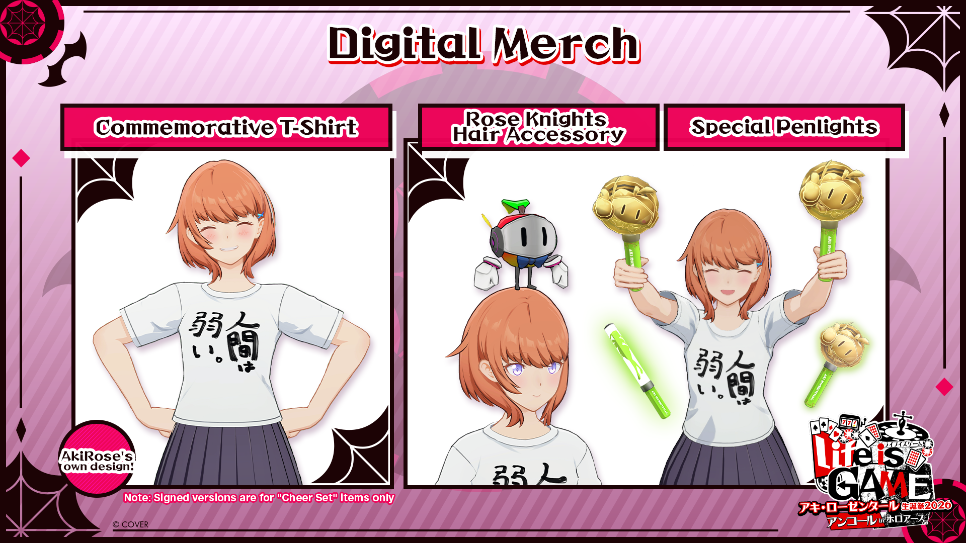 A special cheer set with items for supporting Aki Rosenthal will also be available for purchase, which includes items such as a mascot hair accessory and penlights.