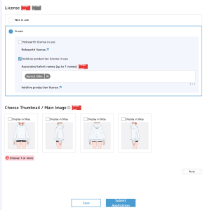 When using the Kureiji Ollie license, you must check the hololive production license and enter “Kureiji Ollie” as the talent name.
