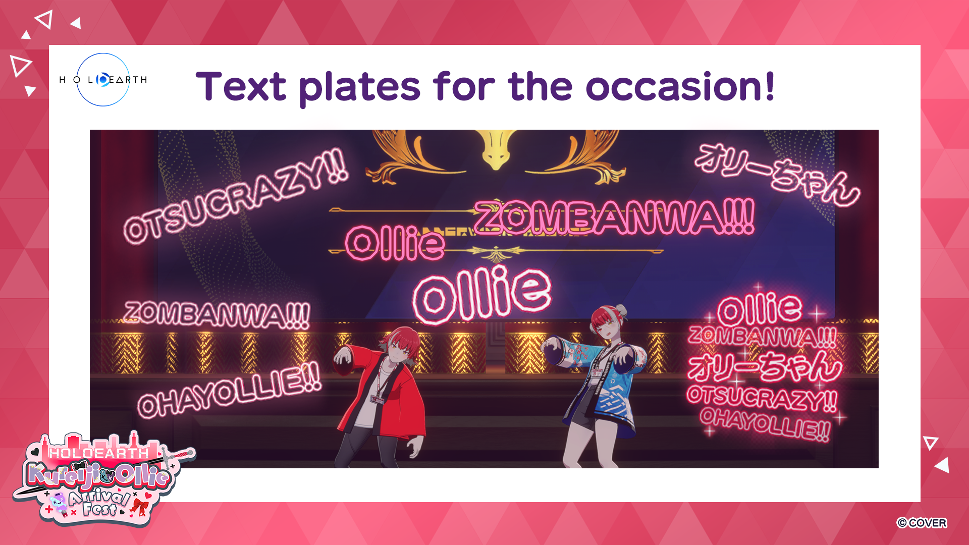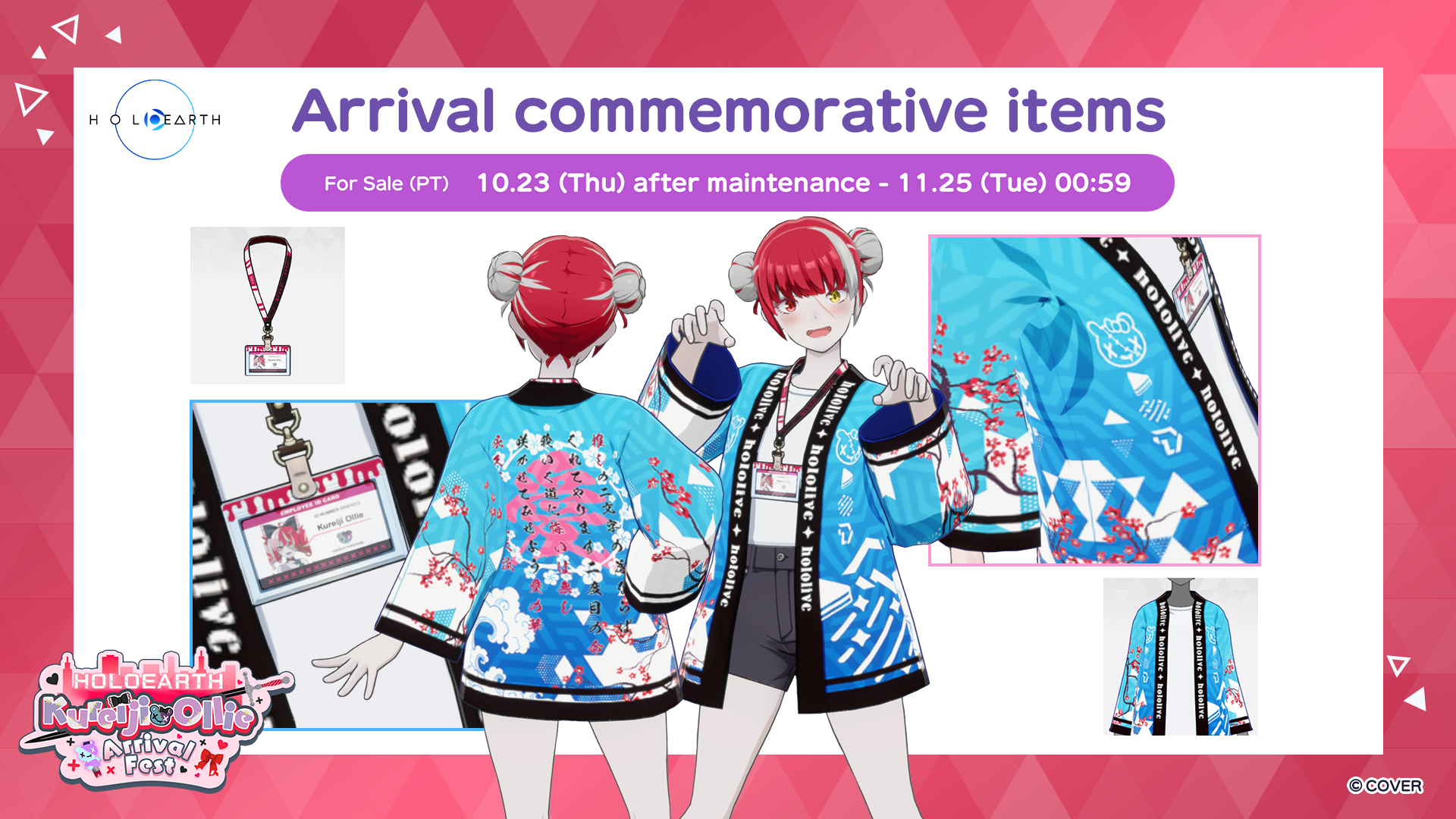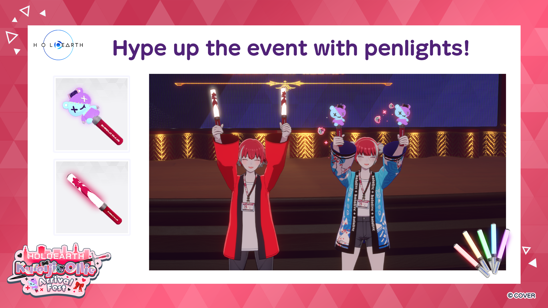 As part of this special event, new avatar items such as a Kureiji Ollie-themed “happi” and penlights for cheering on the event in Holoearth will be available for purchase, and there will be a login bonus campaign leading up to the event!