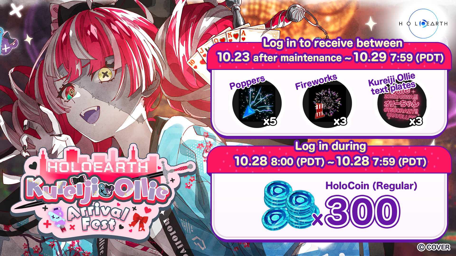 From 20:00 (PDT) on October 28th, 2025 (October 29th from 12:00 (JST)), Kureiji Ollie of hololive production will come to Holoearth as her very own avtar in a special festival event, “Kureiji Ollie’s Arrival Fest.”