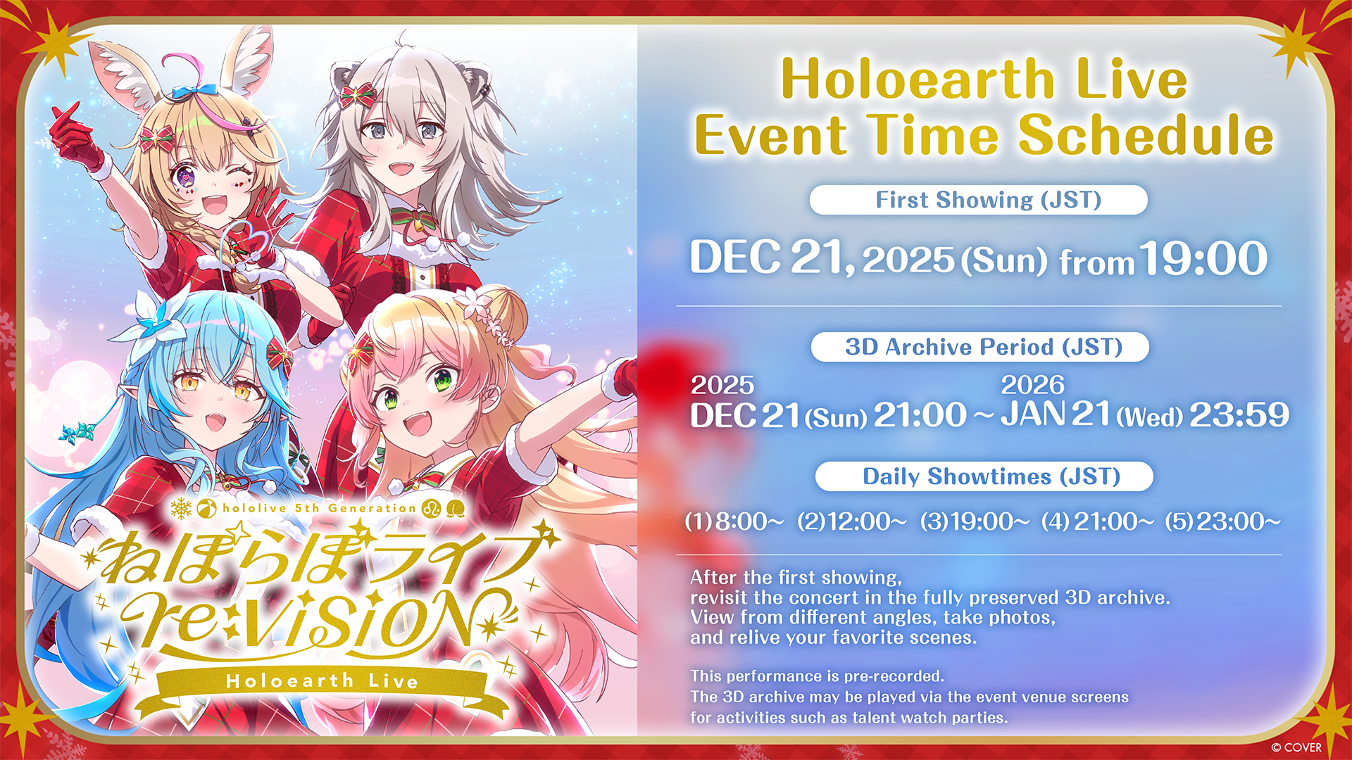 In addition, we are accepting entries for the “NePoLaBo Live re:VISION Holoearth Live 10-Second Video Contest”! We look forward to seeing short videos of your favorite NePoLaBo Live scenes from the full performance!