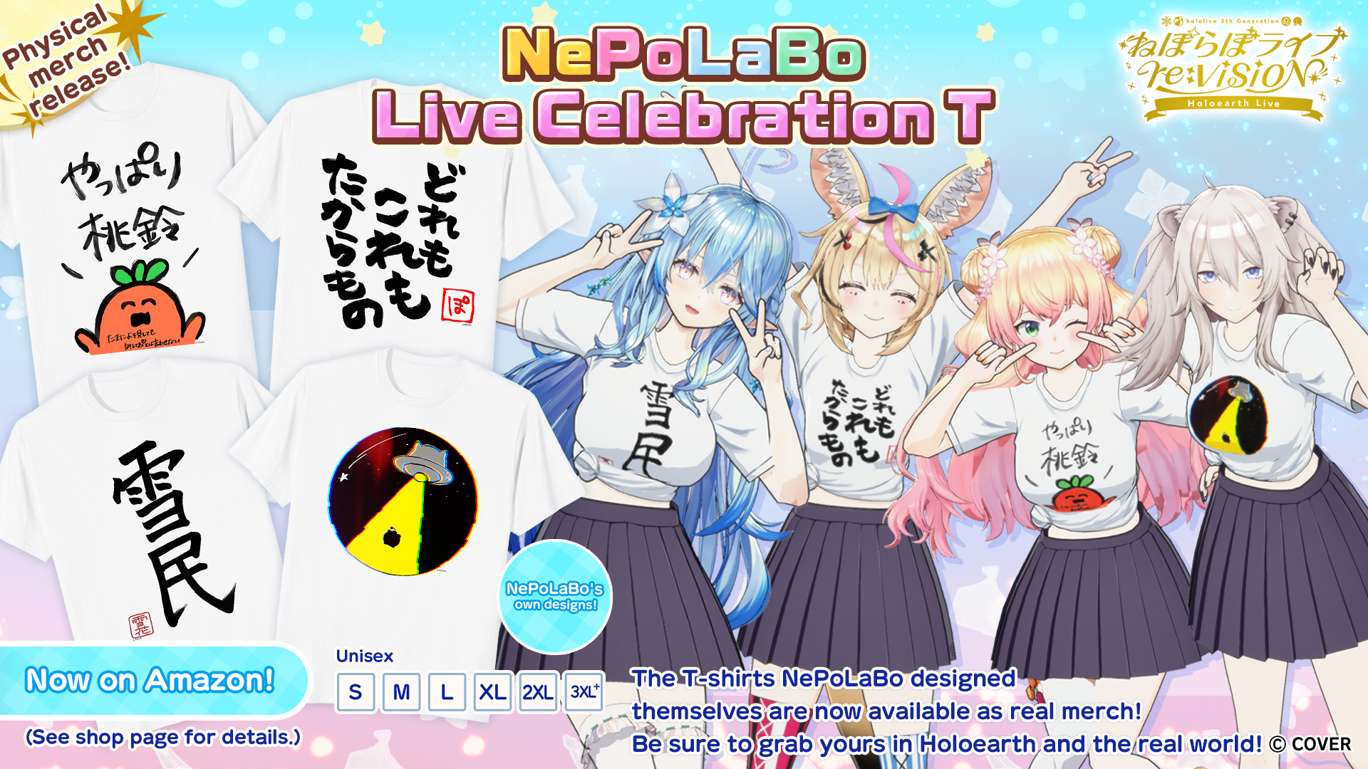 The Live Celebration T-shirts, designed by NePoLaBo in Holoearth, are now available on Amazon!