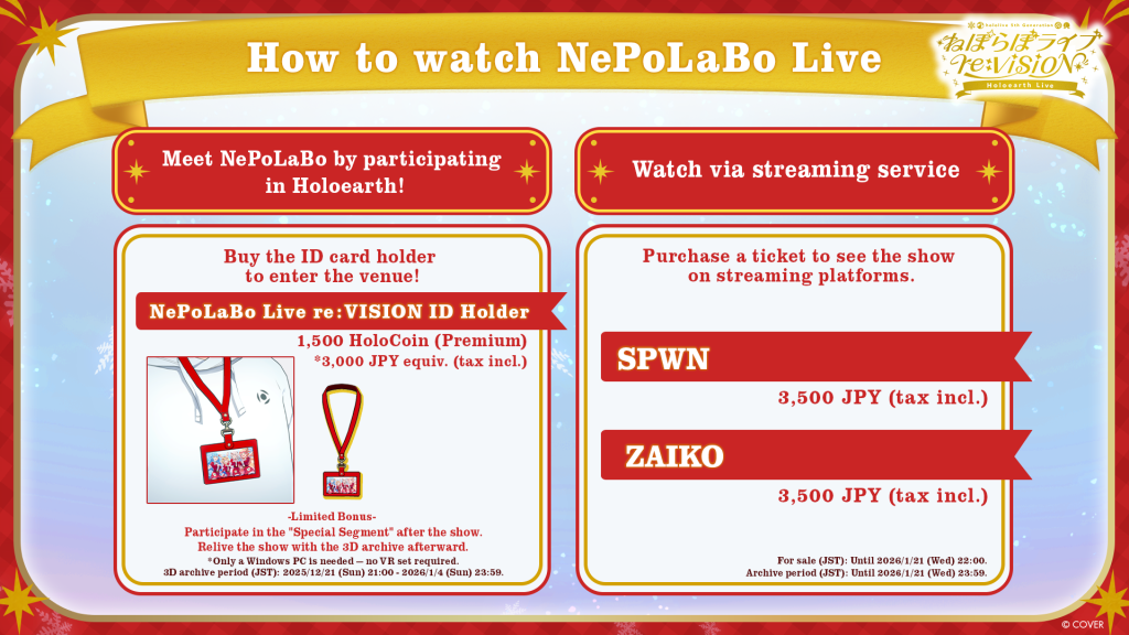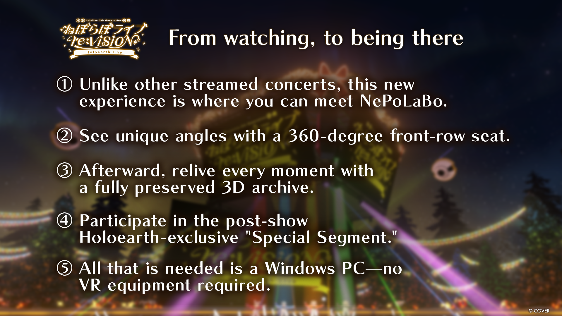 - After the show, you can join a special Holoearth-exclusive segment—a unique opportunity to share the afterglow with NePoLaBo.