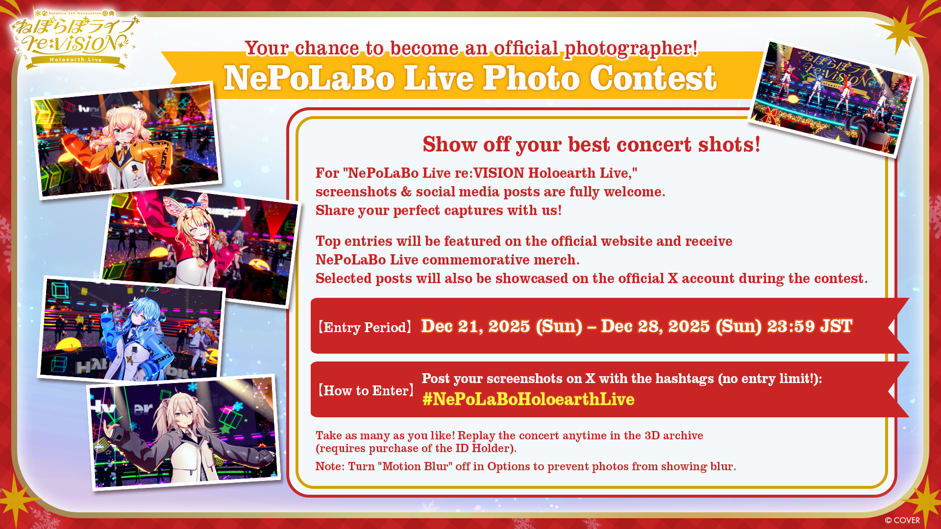 For the “NePoLaBo Live re:VISION Holoearth Live” virtual concert on December 21, 2025, we will hold a photo contest.