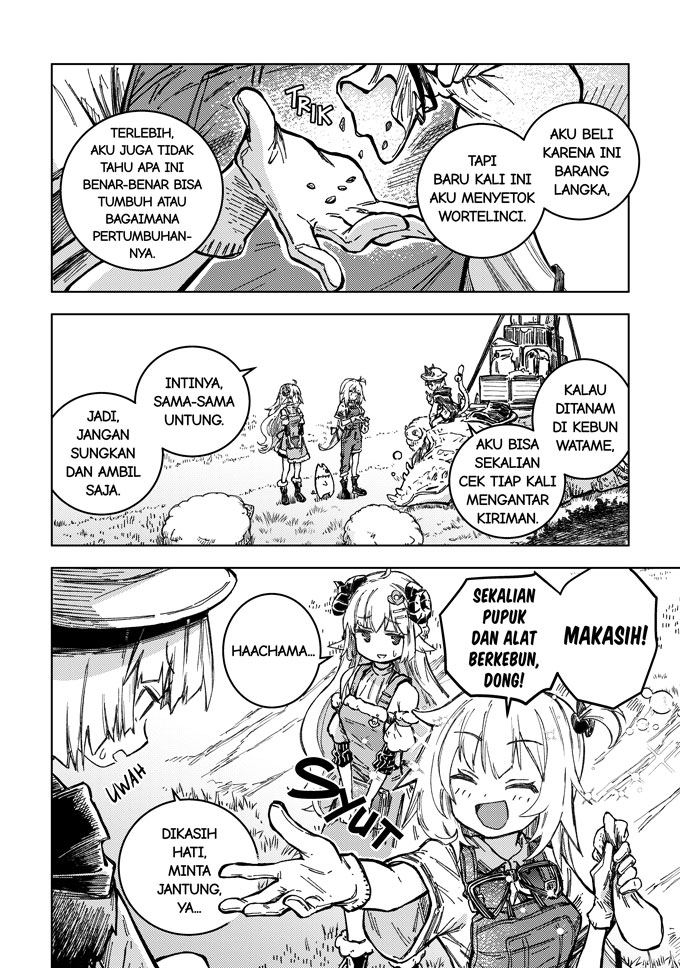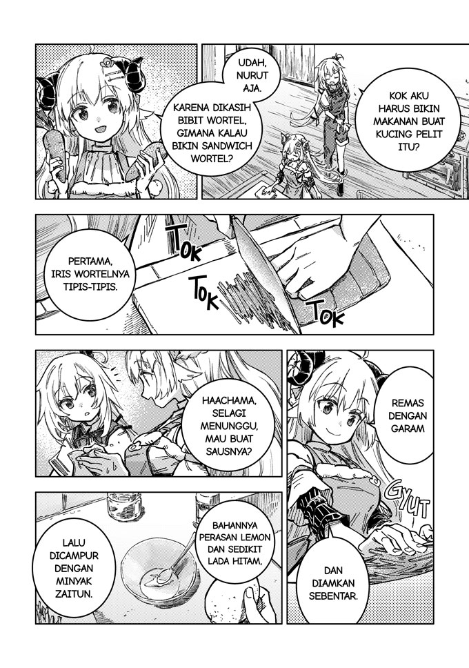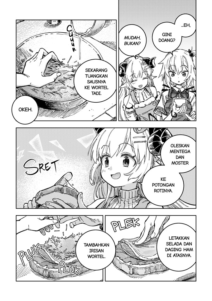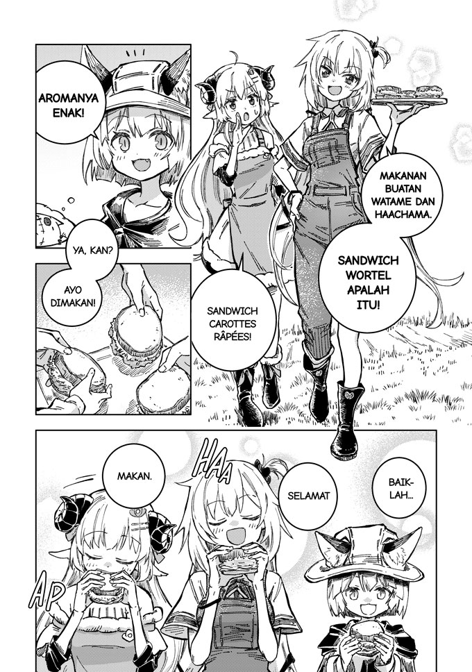 Seorang gadis bernama Akai Haato terlempar ke dunia lain setelah mencicipi masakan buatannya sendiri. Di dunia baru ini, ia bertemu dengan Tsunomaki Watame, seorang penggembala bertanduk, Shiranui Flare, gadis cantik yang menjadi primadona di Kafe Pojok Gang yang populer, dan Shirogane Noel, komandan pasukan kesatria.