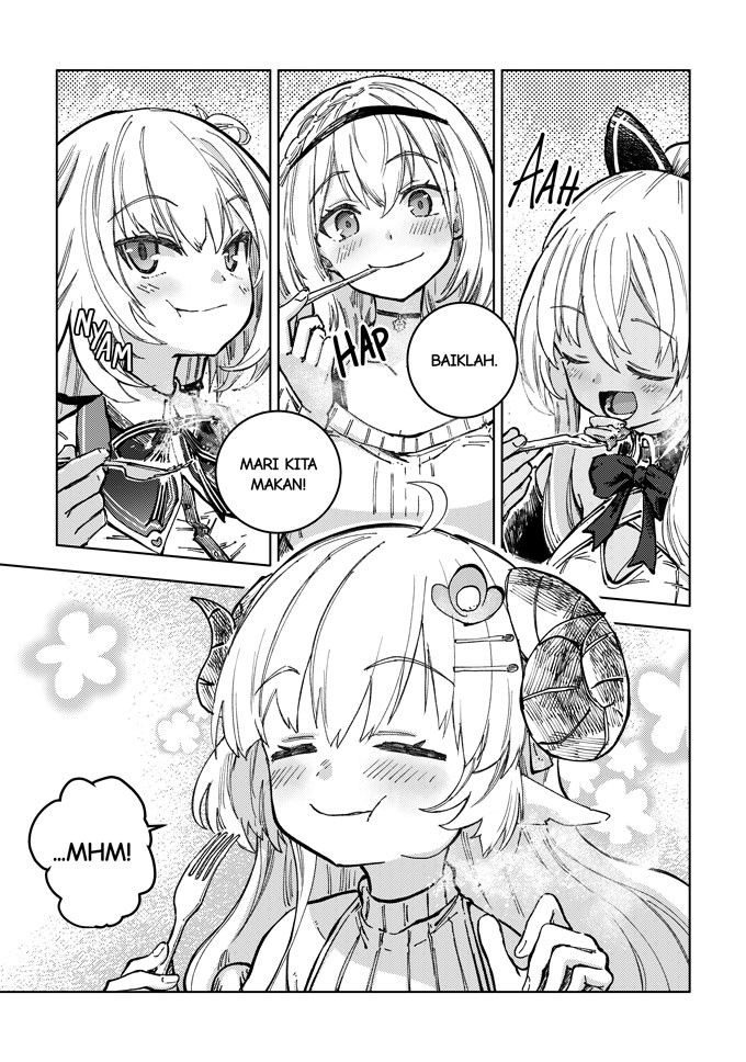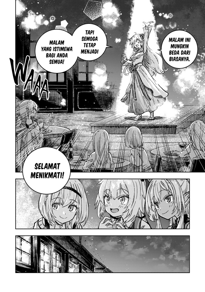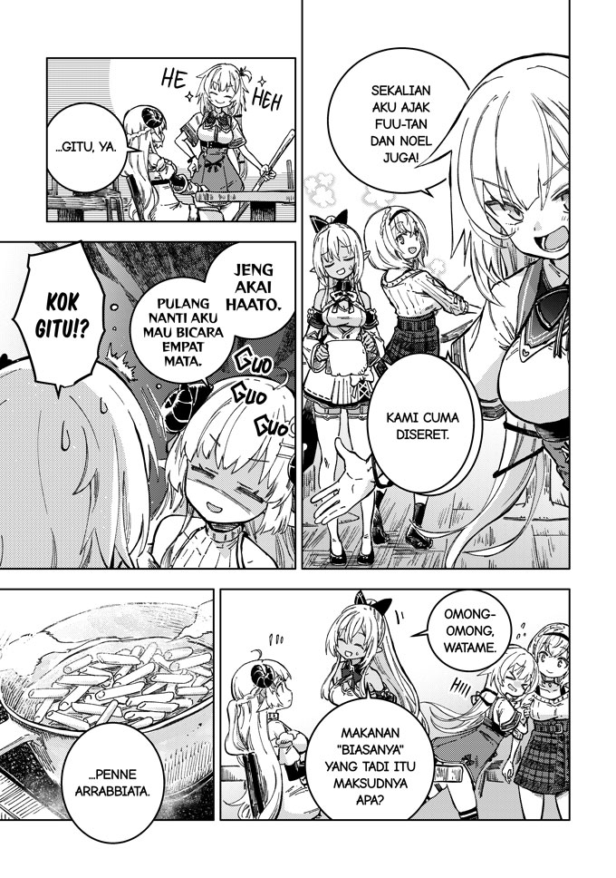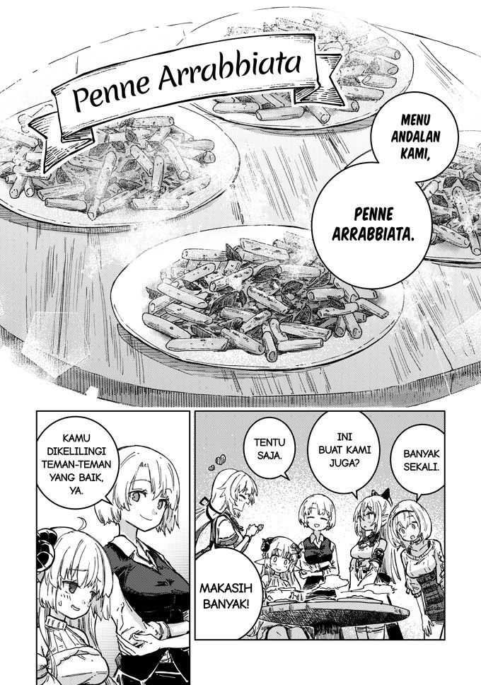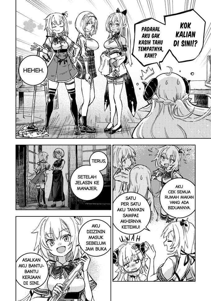 Seorang gadis bernama Akai Haato terlempar ke dunia lain setelah mencicipi masakan buatannya sendiri. Di dunia baru ini, ia bertemu dengan Tsunomaki Watame, seorang penggembala bertanduk, Shiranui Flare, gadis cantik yang menjadi primadona di Kafe Pojok Gang yang populer, dan Shirogane Noel, komandan pasukan kesatria.