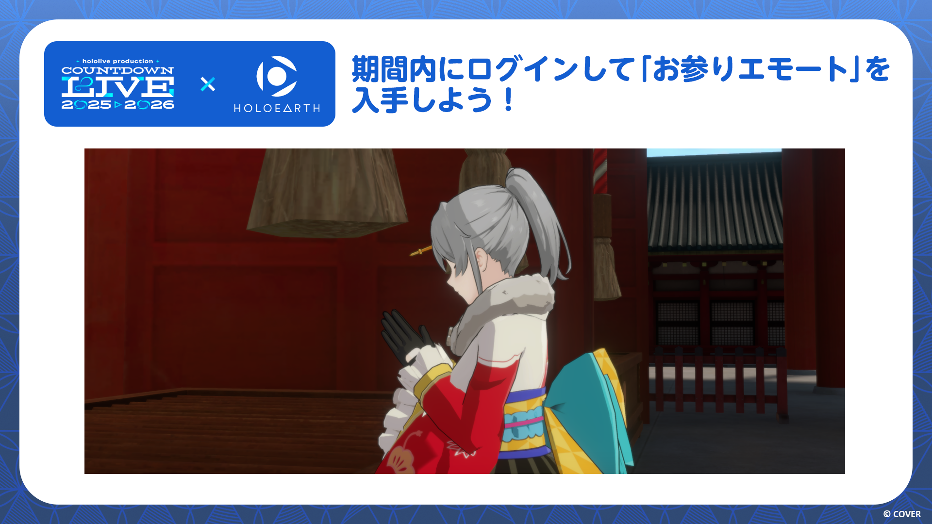 2025年12月31日にホロライブプロダクションがお届けする「hololive production COUNTDOWN LIVE 2025▷2026」をホロアース内でも配信することが決定しました。ライブを同時視聴しながら、2025年の締めくくりをぜひホロアースでお過ごしください!