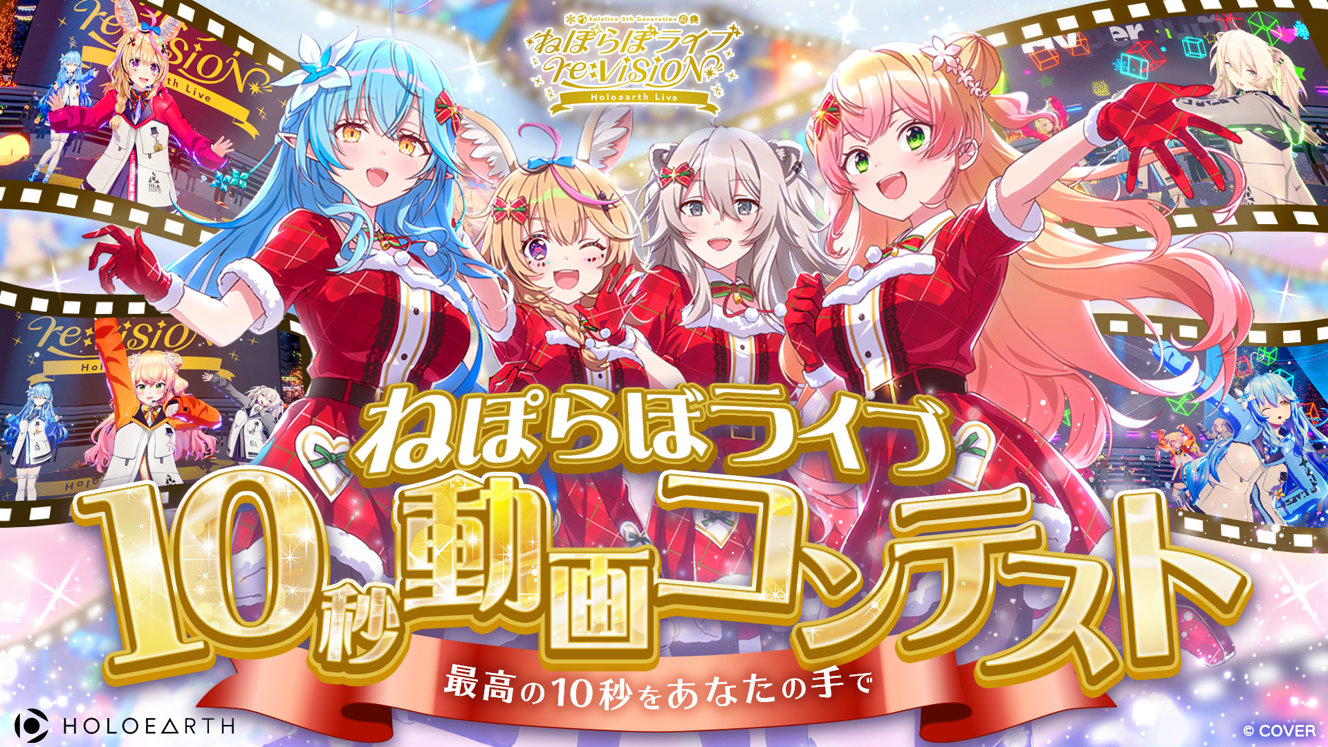 また、「ねぽらぼライブ re:VISION Holoearth Live 10秒動画コンテスト」募集を開始しました!ライブ全編の中から、みなさん一押しのねぽらぼライブシーン動画をお待ちしています!