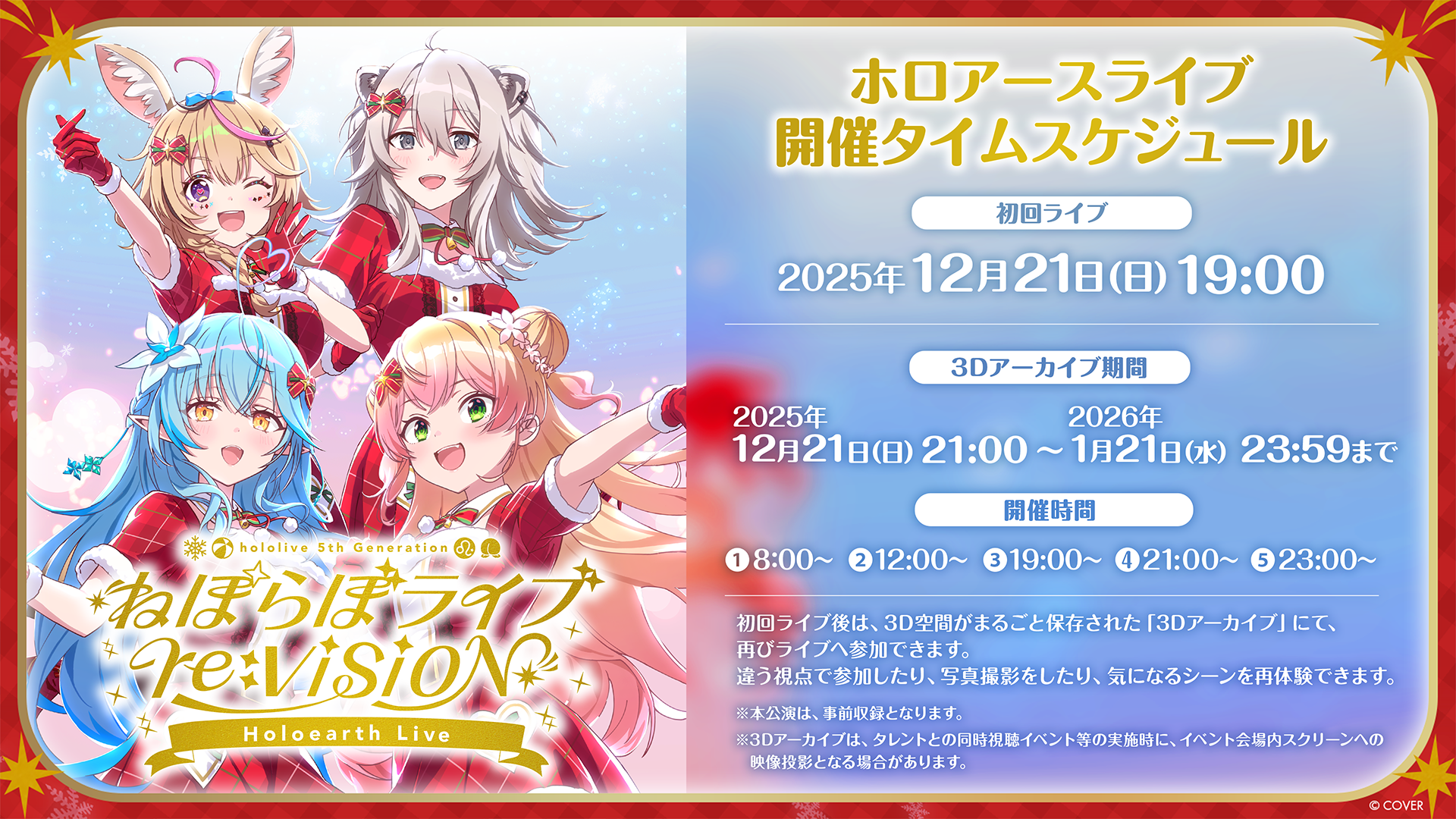 3Dアーカイブ期間:2025年12月21日(日) 21:00 〜 2026年1月21日(水) 23:59(JST)まで