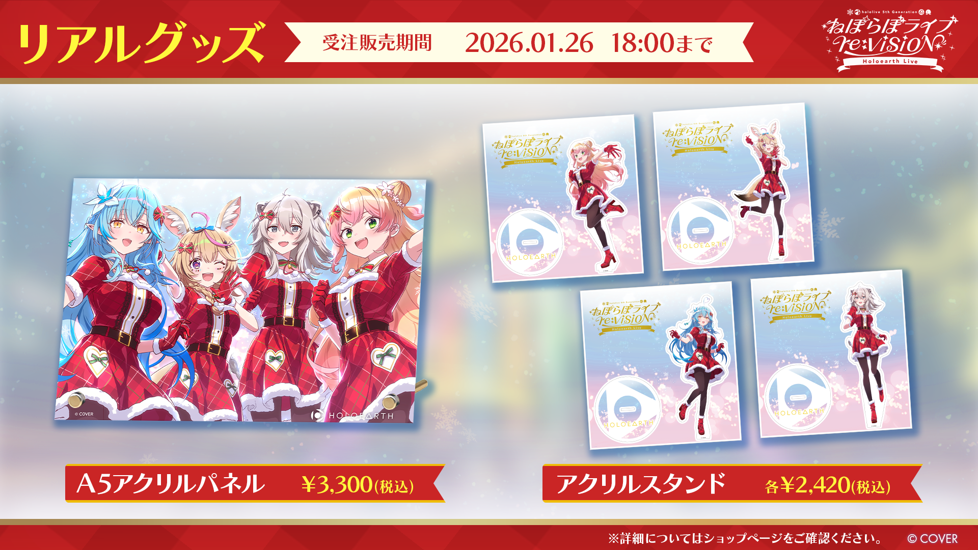 ライブキービジュアルがアクリルパネルとアクリルスタンドになって登場です。