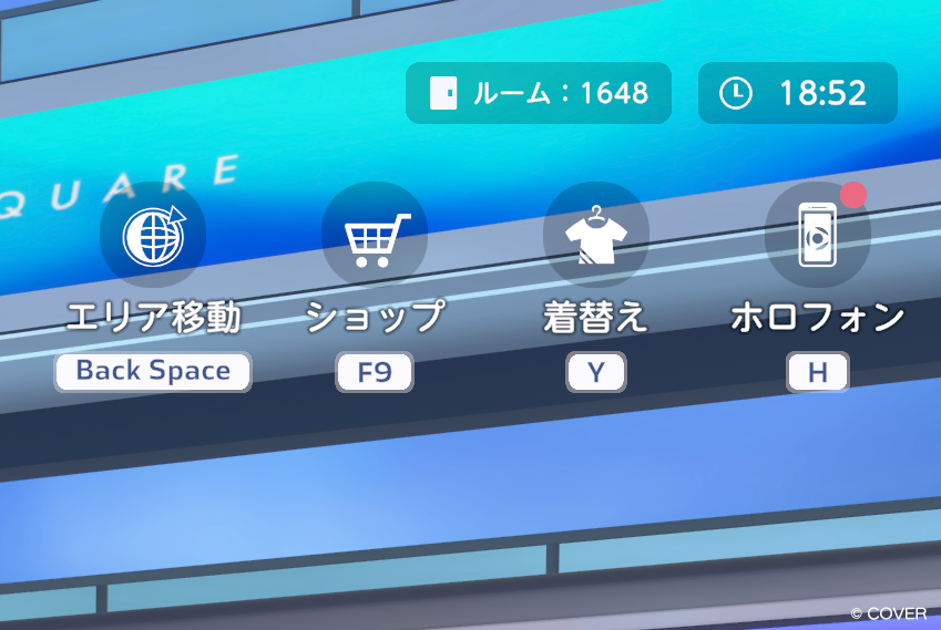 エリア移動、ショップ、着替え、ホロフォンのメニューアイコンが、常に画面上に表示されるようになります。キーボードのショートカットキーを押すことで、各機能をすぐに呼び出すことができます。